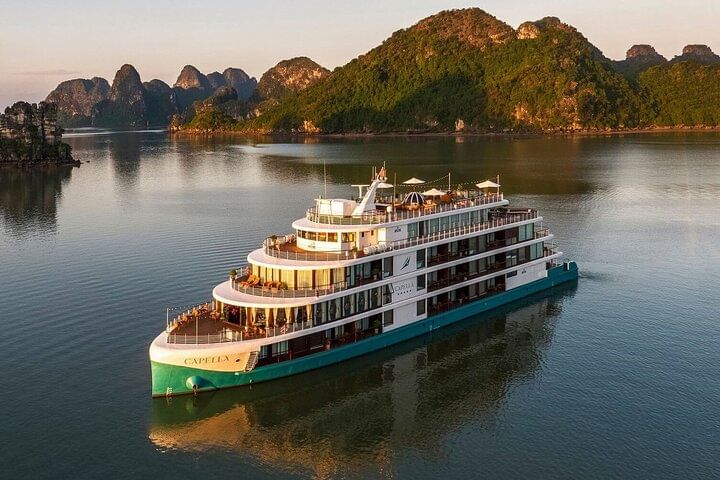 Experience the ultimate luxury getaway with the Capella TOP Cruise 3 Days 2 Nights exploring the breathtaking Halong Bay and Lan Ha Bay from Hanoi. This all-inclusive cruise combines modern comfort and traditional elegance, offering spacious cabins with private balconies and panoramic views of stunning limestone karsts. Enjoy exciting activities such as kayaking, swimming, biking, and squid fishing under the stars. With a fast 2.5-hour limousine transfer from Hanoi and a unique itinerary covering hidden gems of the bays and Cat Ba Island, this tour is perfect for travelers seeking adventure, relaxation, and unforgettable natural beauty. Book now for an exclusive journey that captures the heart of Vietnam’s UNESCO World Heritage site.