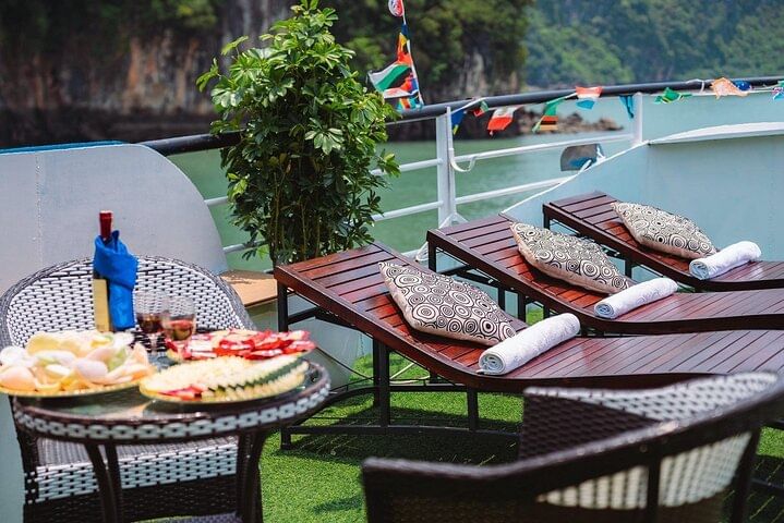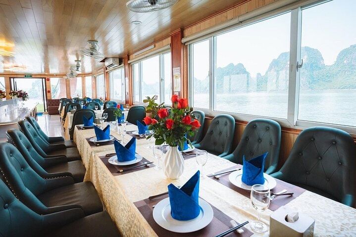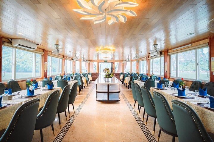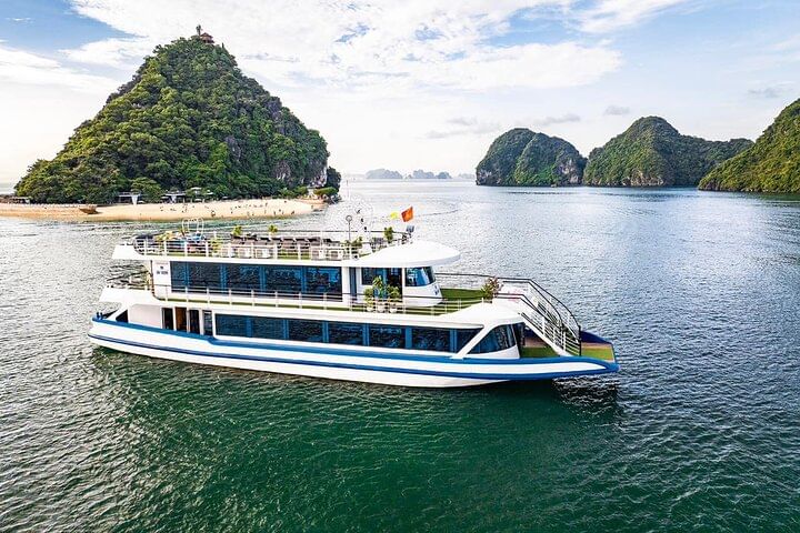 Discover the UNESCO World Heritage Site of Ha Long Bay on an all-inclusive 1-day deluxe cruise from Hanoi, perfect for travelers short on time but seeking a complete and unforgettable experience. Travel comfortably via highway in a luxury limousine from Hanoi to Tuan Chau Marina, then board a modern cruise ship to begin your journey through one of Vietnam’s most iconic landscapes.