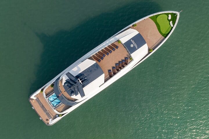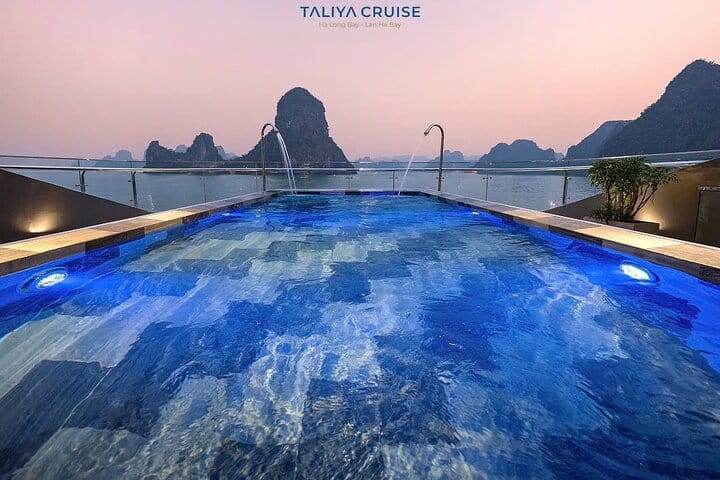 Set sail on a 7.5-hour luxury journey aboard the Taliya Day Cruise and immerse yourself in the natural splendor of Ha Long and Lan Ha Bay. Savor a gourmet buffet lunch while admiring panoramic views of towering limestone cliffs and emerald waters. Paddle by kayak or bamboo boat to explore the mystical Dark and Bright Cave, then enjoy a refreshing swim in the tranquil bay. Delight in a hands-on cooking class, mastering the art of Vietnamese spring rolls, before unwinding on the sundeck with a lively sunset party. Blending breathtaking scenery, rich culture, and refined indulgence, the Taliya Day Cruise delivers an experience you’ll never forget.