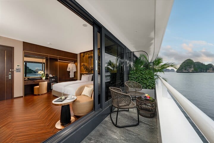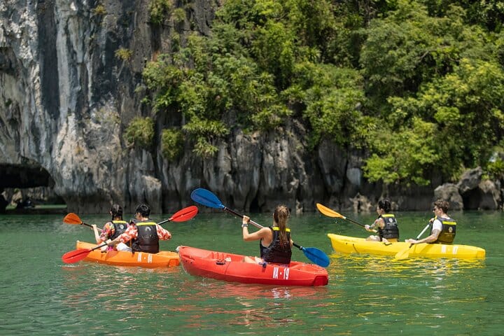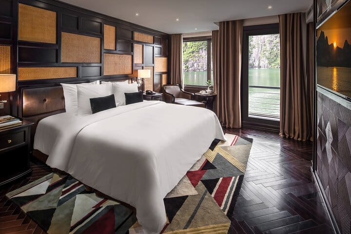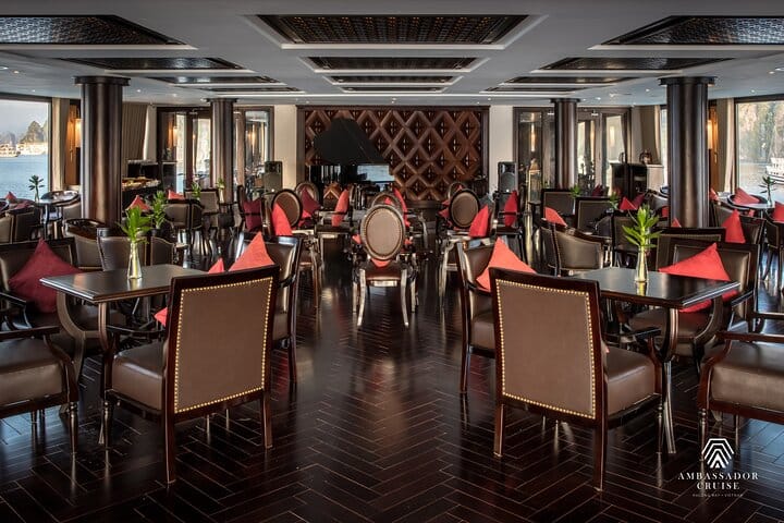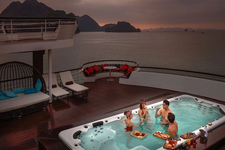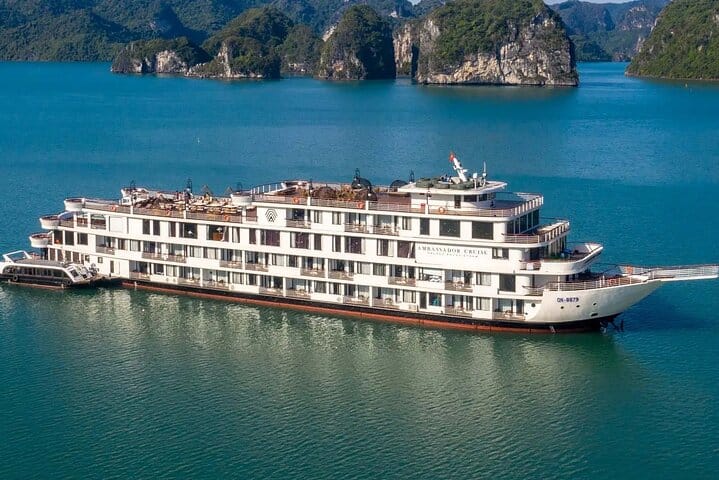 Step aboard one of Halong Bay’s largest and most luxurious cruise ships – the Ambassador – for an unforgettable 2-day, 1-night adventure. This all-inclusive cruise takes care of everything: from meals, activities, and excursions to your deluxe sea-view cabin. Enjoy a full itinerary including Tai Chi at sunrise, bamboo boat rides, cooking classes, and swimming at Titov Island. Relax in the open-air Jacuzzi, savor buffet meals, and meet fellow travelers on this large-group luxury cruise. Choose between round-trip transfers from Hanoi or Halong Bay, whichever suits your travel plans best.