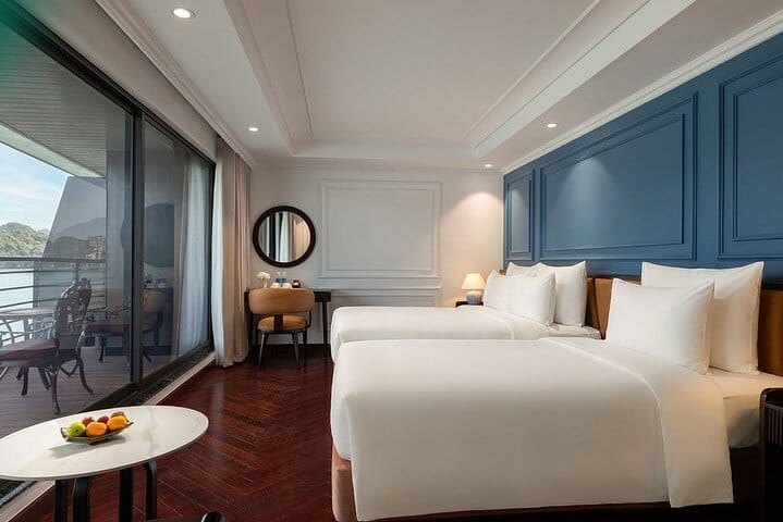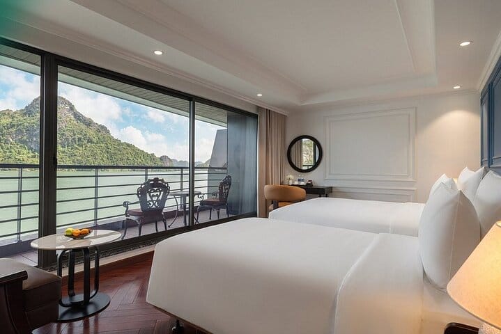 Depart from Hanoi and embark on an elegant 2-day, 1-night journey aboard the Diana Luxury Cruise, discovering the untouched beauty of Lan Ha Bay. Sail through tranquil emerald waters dotted with dramatic limestone islands, far from the crowds. Enjoy spacious cabins with private balconies, refined interiors, and attentive 5-star service throughout your voyage. The itinerary features kayaking through hidden lagoons, visiting peaceful beaches, and exploring scenic caves. Indulge in gourmet Vietnamese and international cuisine, relax on the sundeck at sunset, and wake to a serene sunrise over the bay. This overnight escape offers the perfect blend of luxury, nature, and relaxation.