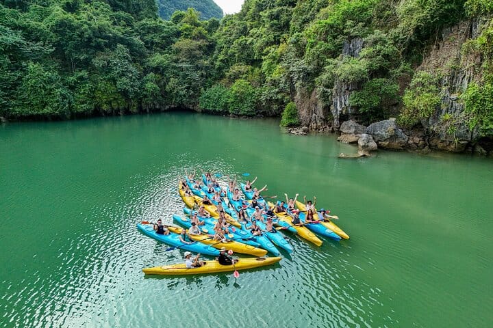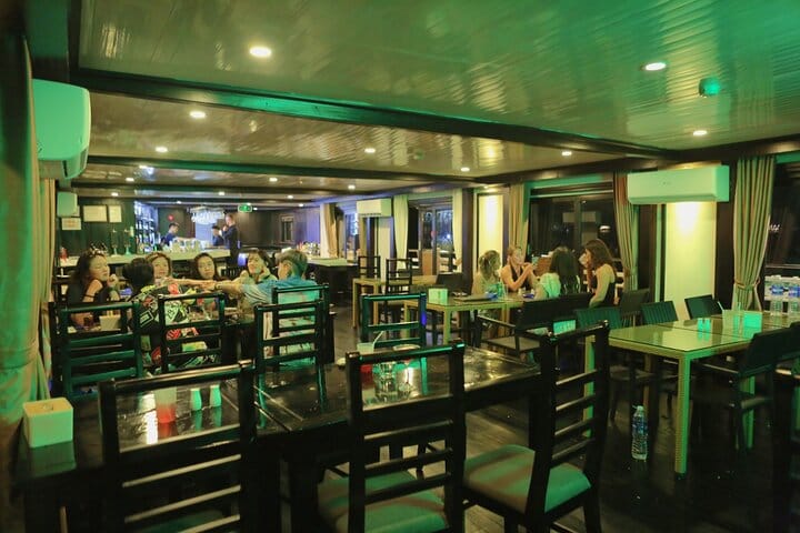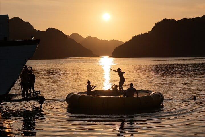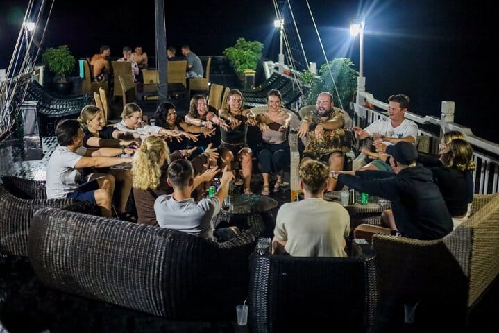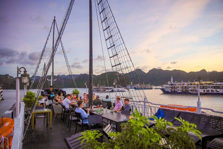 For youthful tourists, the Party Cruise, one of the biggest cruises in Halong Bay, offers a distinctive experience. With exciting pursuits including kayaking, water trampolining, swimming, boat jumping, beach volleyball, and football, it provides a lovely tour of Halong Bay. For those looking for picturesque landscapes, adventure, and new acquaintances, this party and activity package is ideal.