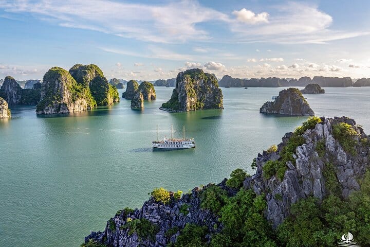 Embark on a 2-day journey from Hanoi to the breathtaking Bai Tu Long Bay aboard the charming Treasure Junk Cruise. Sail through emerald waters dotted with towering limestone karsts, visit the peaceful Vung Vieng Fishing Village to learn about local life, and explore hidden caves. Enjoy kayaking, and fresh seafood meals while soaking in the serene beauty of this less-crowded gem of Halong Bay.