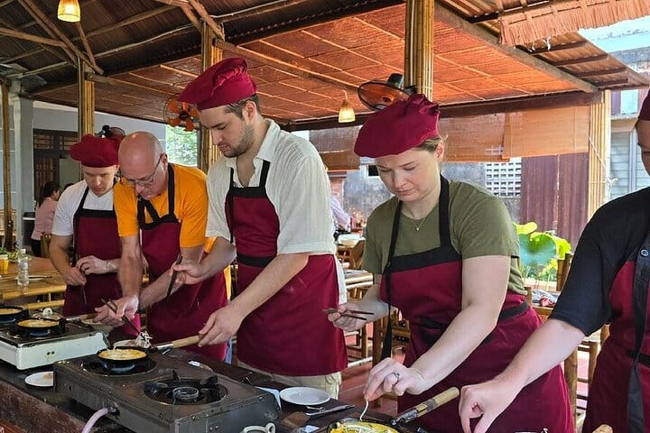 Embark on a half-day Hoi An eco adventure that combines local culture, cuisine, and nature. Start with a guided visit to a bustling market to select fresh ingredients, then head to Cam Thanh Village to explore the peaceful waterways by basket boat and try crab fishing in the coconut forest. Continue with an intimate Vietnamese cooking class, where expert chefs will teach you how to prepare traditional dishes in a charming riverside restaurant. After enjoying your handmade meal, relax in the serene surroundings of the coconut jungle before returning to your hotel. This immersive tour offers a perfect blend of Hoi An cooking, culture, and countryside in just a few unforgettable hours.