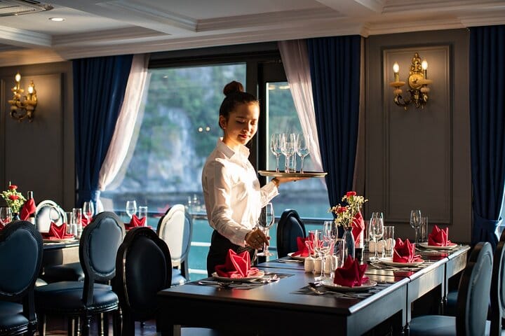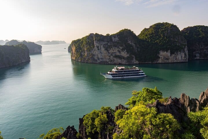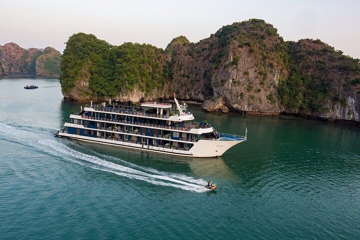 Luxury 3D2N Halong – Lan Ha Bay Cruise Experience from Hanoi offers an unforgettable journey through the stunning limestone landscapes of Halong Bay and the tranquil waters of Lan Ha Bay. Departing from Hanoi, this 3 days 2 nights luxury cruise features elegant cabins, gourmet dining, kayaking, swimming, Tai Chi sessions, cave exploration, and sunset views on the sundeck. With premium services, carefully designed itineraries, and breathtaking natural scenery, this cruise is the perfect choice for travelers seeking a high-end Halong and Lan Ha Bay cruise experience.