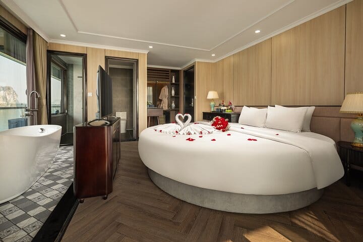 Experience a newly launched five-star cruise journey through the breathtaking route from Halong Bay – a UNESCO World Heritage Site – to the serene and less touristy Lan Ha Bay. Enjoy luxurious accommodations and top-tier amenities including a stylish restaurant, sky bar, and a relaxing swimming pool. This exclusive itinerary highlights the untouched beauty of Lan Ha Bay, offering guests the chance to kayak, swim, and immerse themselves in nature. Perfect for couples, families, or friends looking to create unforgettable memories in one of Vietnam’s most stunning seascapes.
