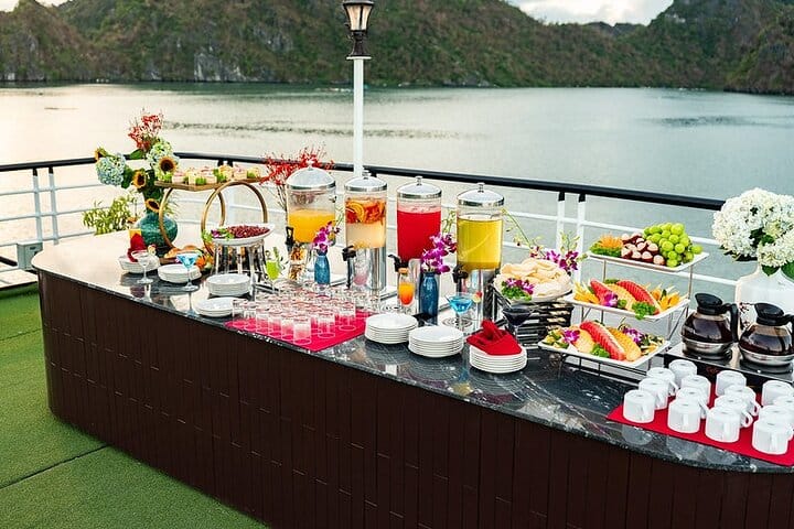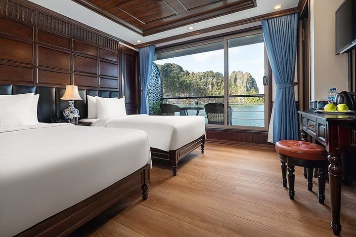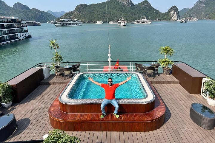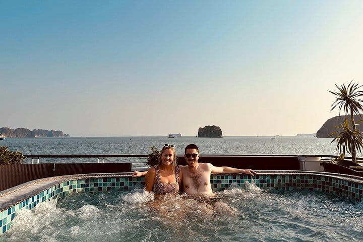 Experience the most iconic sights of Halong Bay departing from Tuan Chau International Marina, then explore the serene and less crowded Lan Ha Bay—often called a forgotten paradise. Choose from three luxurious room types: Junior Suite, Senior Suite, and Family Suite with private terraces, each designed to suit different traveler needs. Enjoy top-notch facilities including an outdoor Jacuzzi pool, spa services, themed parties on request, a stylish bar and restaurant, as well as engaging activities such as kayaking, sunbathing, squid fishing, afternoon tea, and cooking classes. Discover the breathtaking landscapes of Tonkin Bay, encompassing Halong Bay, Lan Ha Bay, and nearby areas, on a premium 5-star overnight cruise.